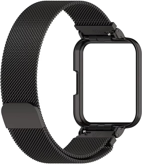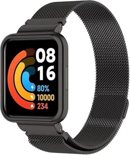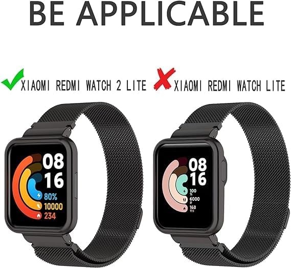 ELMO3EZZ - سوار ميلانو معدني مغناطيسي شبكي بديل مصنوع من الفولاذ المقاوم للصدأ من الموعز متوافق مع ساعة شاومي ريدمي واتش 2 لايت، أسود