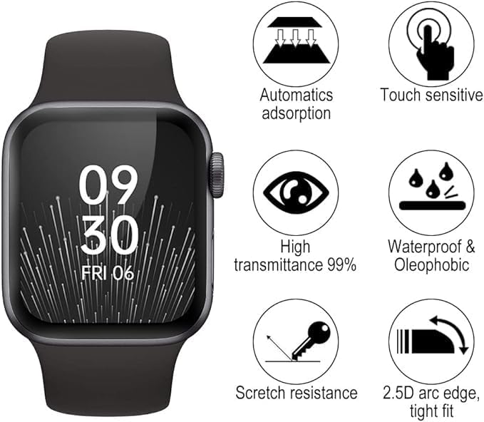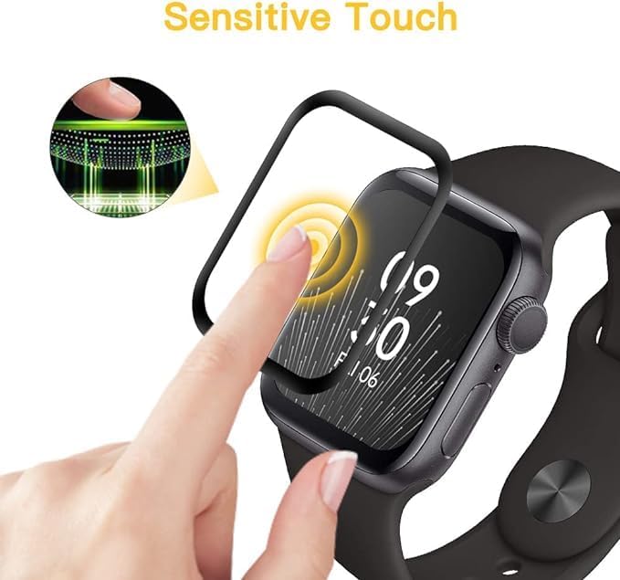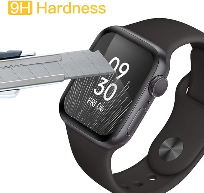 ELMO3EZZ - شاشة حماية من زجاج مقوى بتغطية كاملة ثلاثية أبعاد وصلابة 9H من المعز لساعة ابل سلسلة 6/5/4/SE 40 ملم، شفاف للغاية، قطعتين