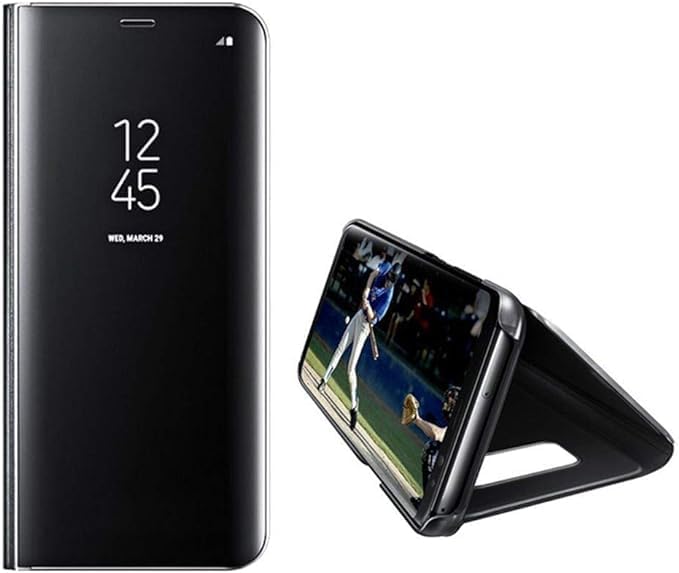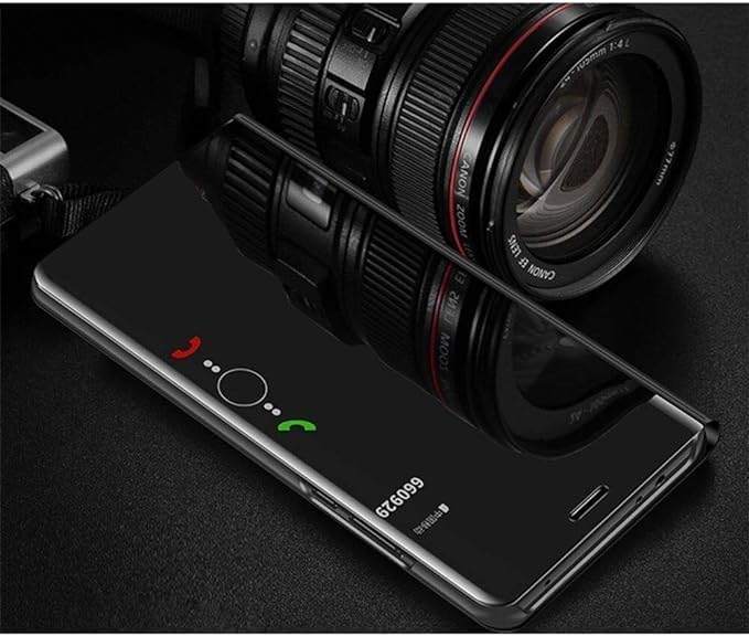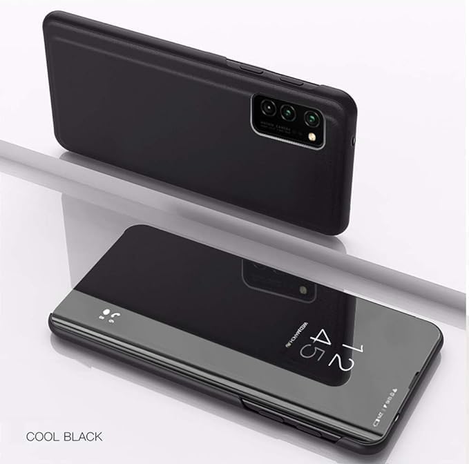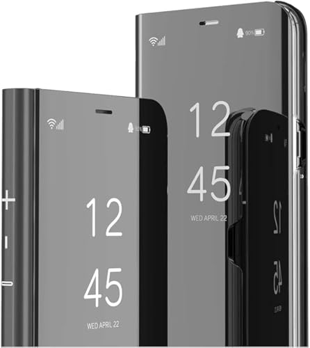 ELMO3EZZ - جراب نافذة سمارت فيو من المو3EZZ لهاتف سامسونج جالاكسي A23، تصميم مرآة عمل حماية كاملة مع مسند قلاب A23 JM اسود، سيليكون
