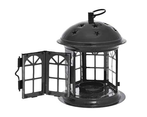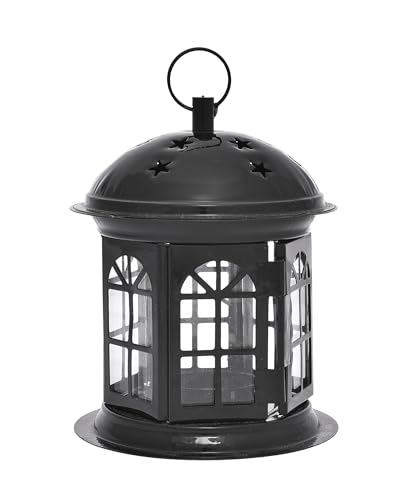 Elnada - فانوس صغير بتصميم فريد لديكور المنزل والفناء والاحتفال بشهر رمضان من الندى، لون أسود