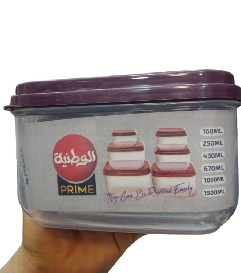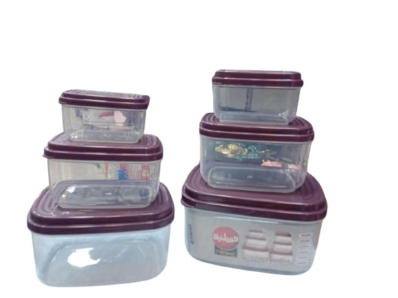 Generic - ELWATANIA Eco Refrigerator Box Set 6 Pieces, Plastic, Pp5, Bpa Free, Clear, Different Sizes Dark Mauve