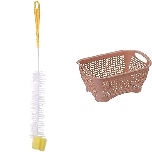 elyassin - فرشاة تنظيف زجاجات كبيرة بألوان مختلفة + سلة بلاستيكية مستطيلة كبيرة بمقبض بألوان متنوعة