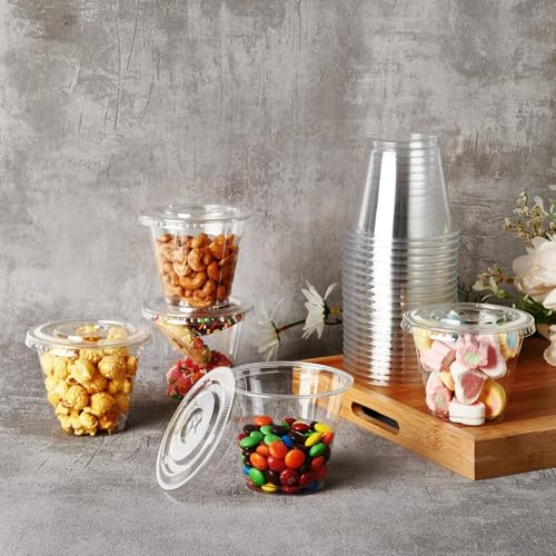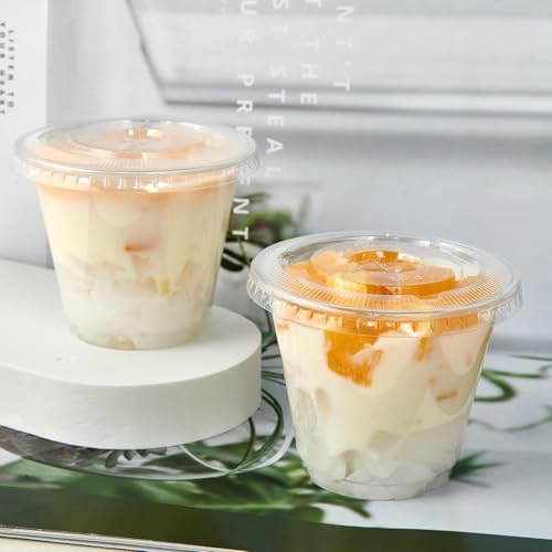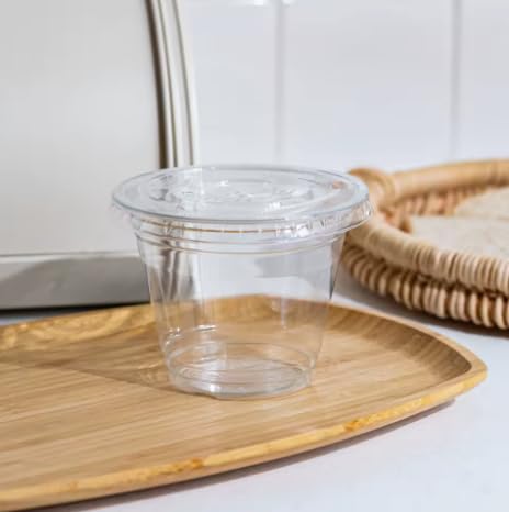 • Omar Egypt Clear 8 Ounce Plastic Cups with Flat Lids Disposable Pack of 50