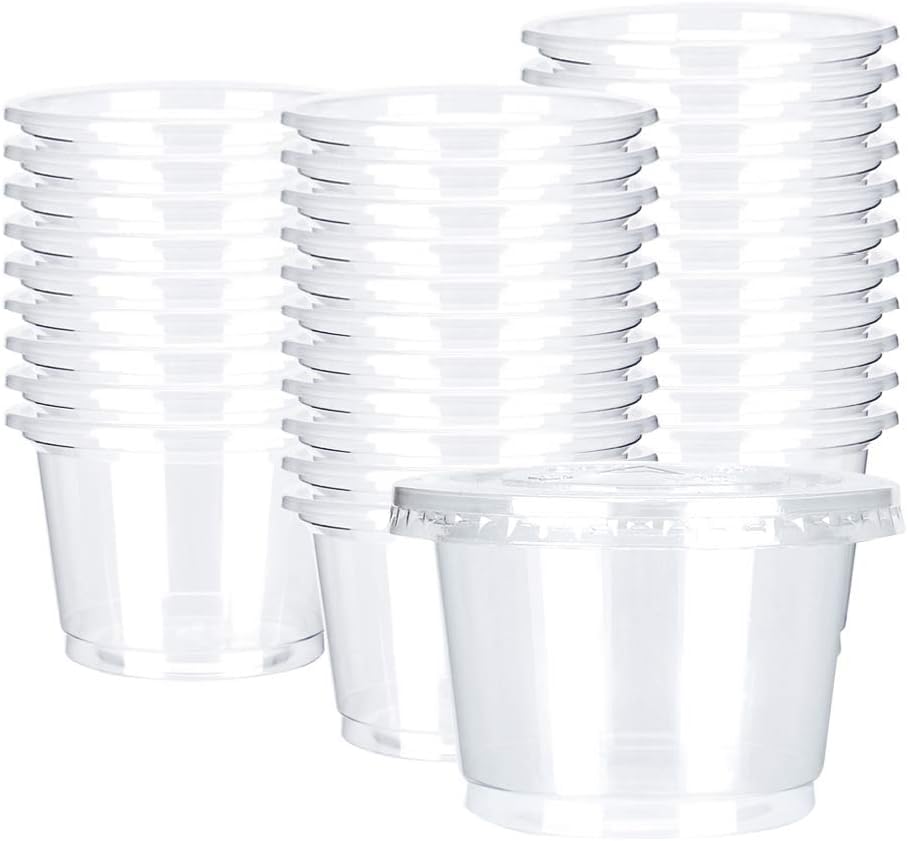 • اكواب ايس كريم بلاستيكية شفافة سعة 8 اونصة مع اغطية مسطحة من اعمار مصر، للاستعمال مرة واحدة، عبوة من 100 قطعة.