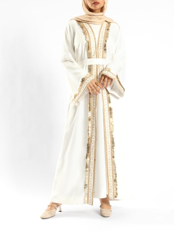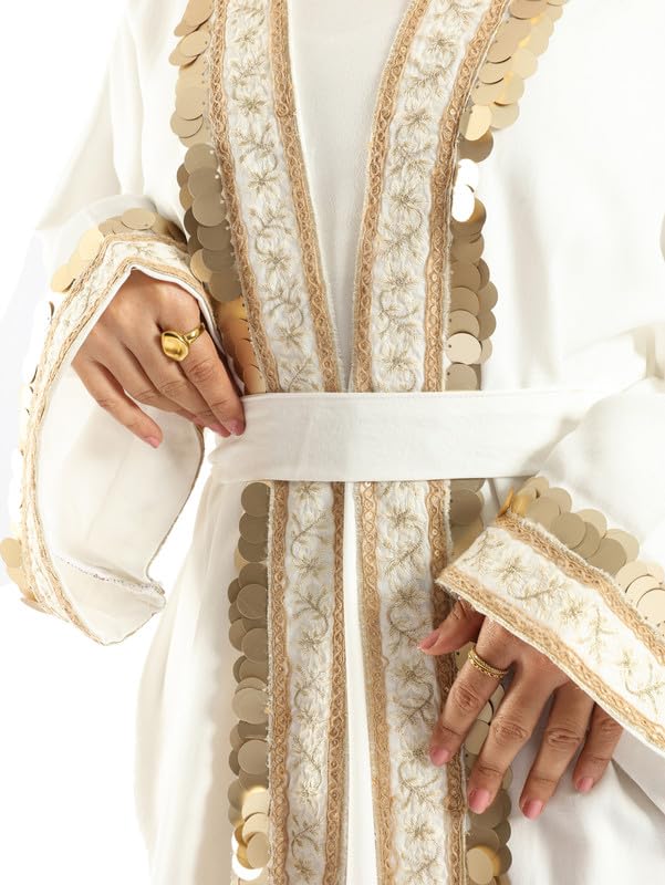Emalina - Golden Jewel Kaftan For Women One Size,White