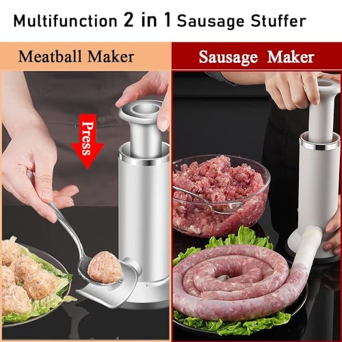 - Upgrade 2 In 1 Sausage Stuffer Machine: You Will Receive 1 Piece Of Manual Sausage Maker With Enema Tube And Meat Scraper (Without Casing), Not Only Can Make Sausages, But Also Meatballs, The Two-In-One Design Saves Space.
