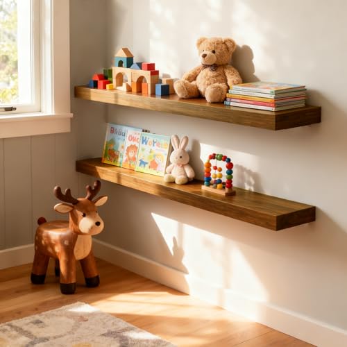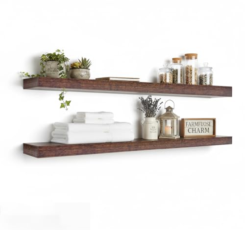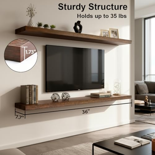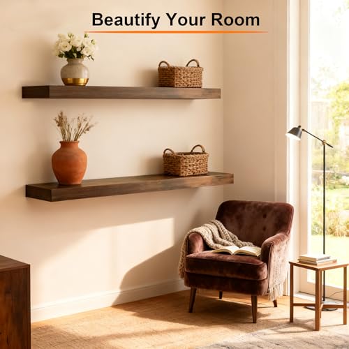 Emaraly - Floating Shelves for Wall,Wall Shelves for Decor Storage,Display Shelving 36 inch Set of 2,Wall Mounted Wood Shelf for Bedroom,Living Room,Bathroom,Kitchen,Brown (2pcs,Brown)