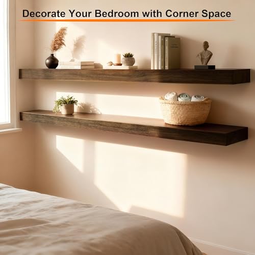- Extra Thicker:Extra Wider and thicker design in order to bring maximizes storage space and weight capacity for shelves.Even each floating shelves can bear a weight of 35 pounds.Whether you want to design your bathroom decor or home decor,these wall shelves seamlessly integrate with any furniture and can be mounted on any wall.