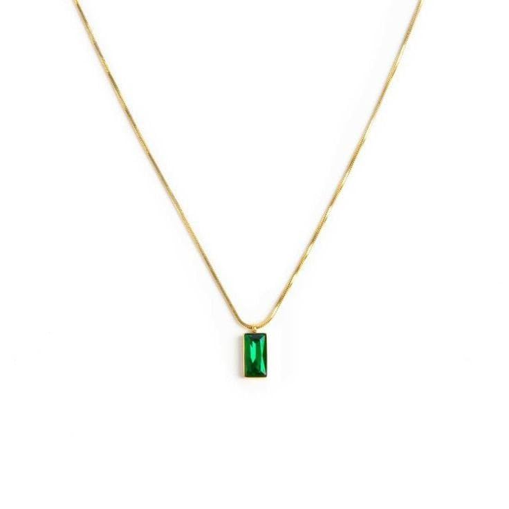 Generic - Emerald Green Gemstone Pendant Necklace on Gold Chain, 45cm