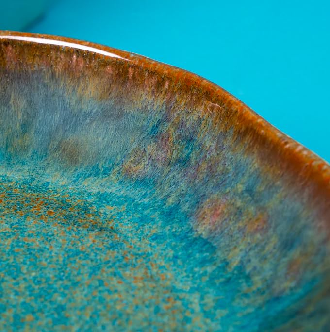 - لمسة نهائية لامعة مذهلة: تتميز بطبقة زجاجية تفاعلية جميلة باللون الأخضر الزمردي مع لمسات حافة ذهبية وبنية، مما يضمن أن كل قطعة لها اختلافات مميزة في الألوان والشخصيات