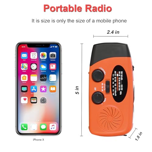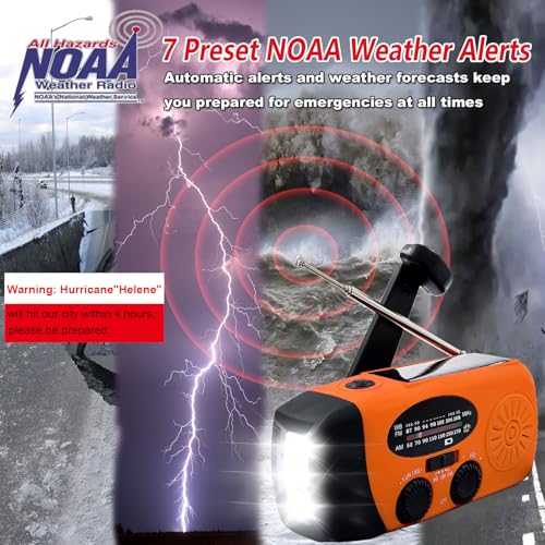 LOOFHIEN - Emergency Hand Crank Radio with 3 LED Flashlight, AM/FM NOAA Weather Radio, 2000mAh Portable Radio with SOS Alarm, USB-C Charged & SOS Alarm & Flashlight for Indoor/Outdoor Emergencies (Orange)