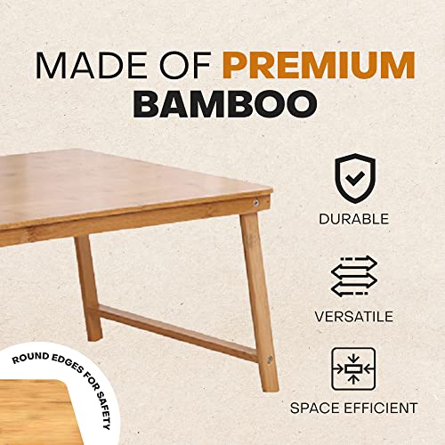 - VERSATILE – It is bigger than most bed desk for laptop and writing. With its’ 21 x 13.1 inch surface, you can do perform a multitude of tasks on it. Whenever you are using it as a tray table for bed or chair to eat or for leisure, the convenience that it affords you is unparalleled. It can serve as a low table (Height: 10 inch) for sitting on the floor too!