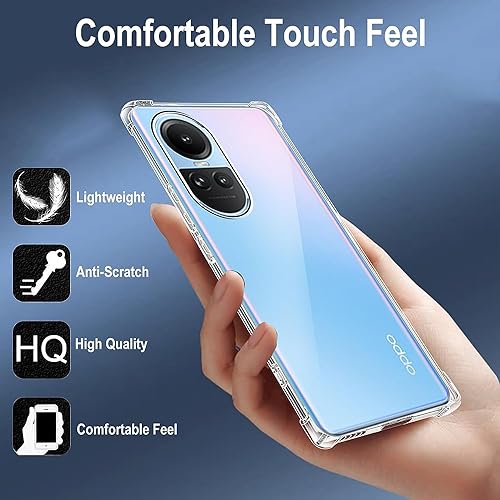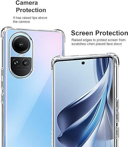 - Case for Oppo Reno 10 / Reno 10 Pro Cover Clear Back Air Cushion Soft Silicone Shockproof Anti-Scratch Protective Bumper Shell Corner for Oppo Reno10 / Reno10 Pro by Emodil