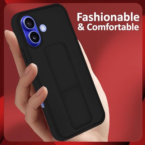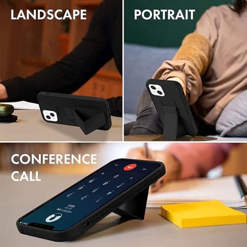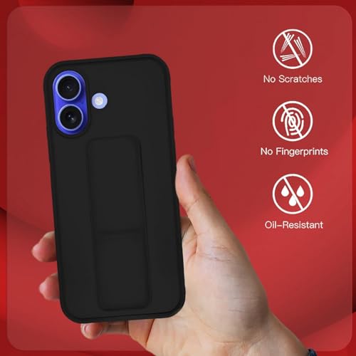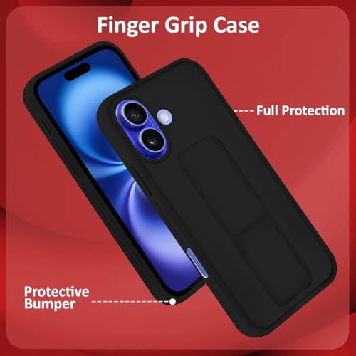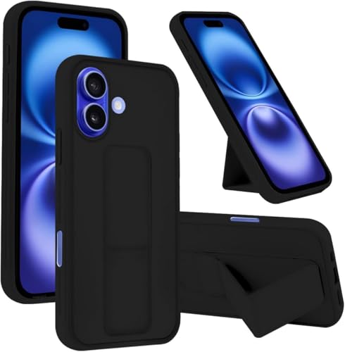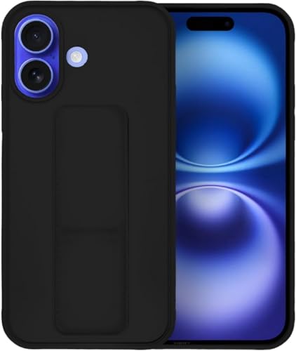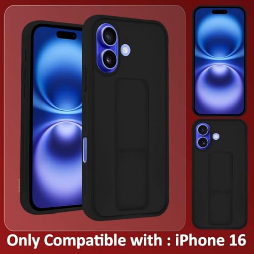- Case for iPhone 16 Cover Black Magnetic Car Mount Kickstand & Holder Premium Silicone Vertical & Horizontal Hand Strap and Grip with Multi Stand for iPhone 16 (Black)