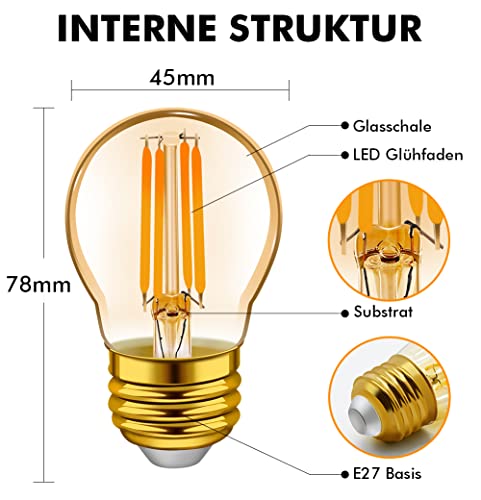 Emotionlite - Emotionlite E27 LED Bulbs, LED Filament Bulbs, 4W (40W Equivalent), Amber Glow, 2200K, E27 Base, P45/G45 Golf Balls, Pack of 6