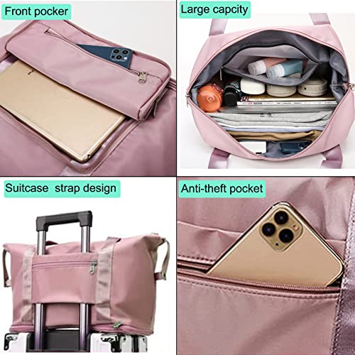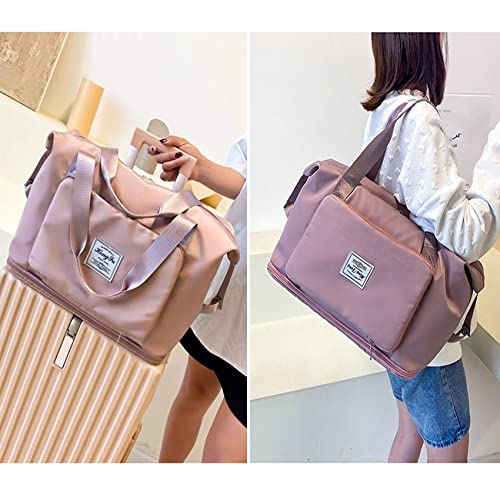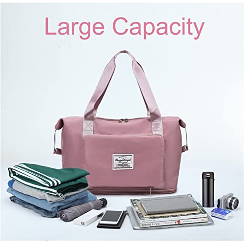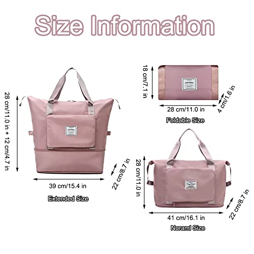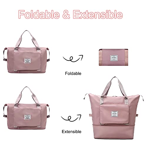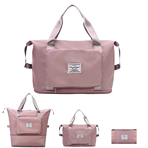 EMPCYDIA - شنطة دفل قابلة للطي للسفر، شنط كتف ويد توت كبيرة للنساء لعطلة نهاية الاسبوع للمبيت ليلة واحدة بتصميم قابل للتوسيع للاستخدام في الطائرات وللرياضة، خفيفة الوزن ومقاومة للماء (بينك شيري)، معدن