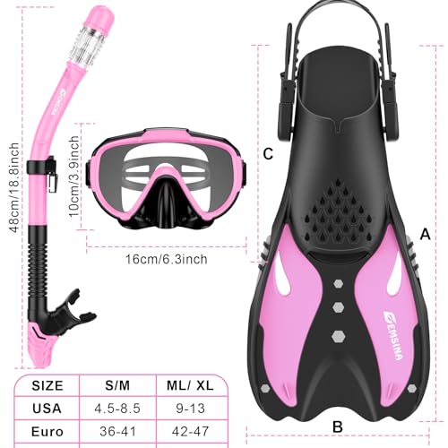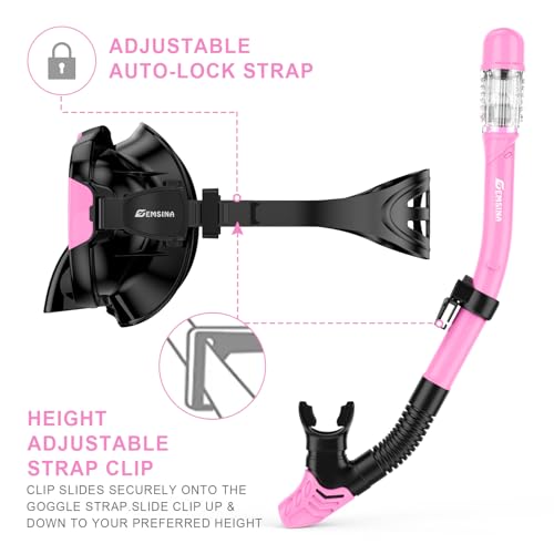 Emsina - EMSINA Dry Snorkel Set,Panoramic Wide View,Anti-Fog Scuba Diving Mask,Professional Snorkeling Gear