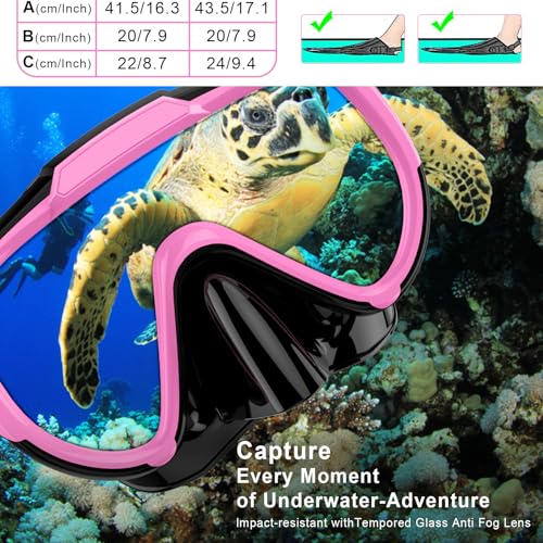 - CLEAR CRYSTAL LENSES VISION SNORKEL MASK: These panoramic masks have been designed to give you an ‘Open-Wider View’, great visibility, fit, durability and comfort. The tempered glass lens is treated with anti-fog technology, which can effectively prevent it from fogging up and provide you with a vivid view underwater. At the same time, impact-resistant tempered glass withstands deep-water pressure and provides protection, safety comes first!