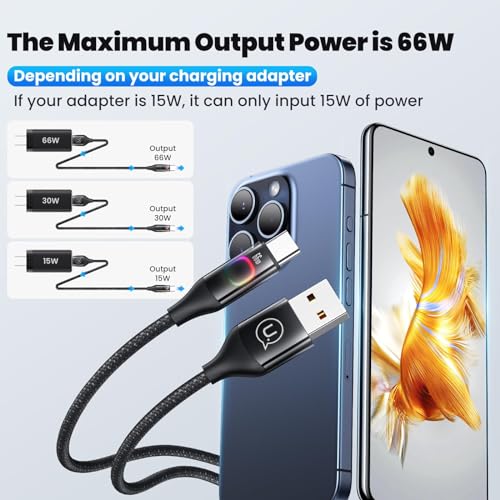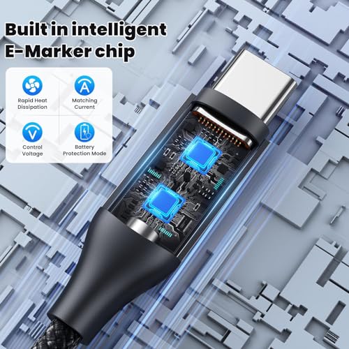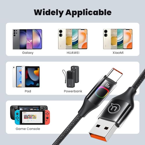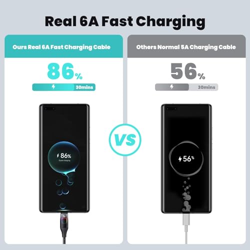 - [كيبل USB نوع سي للشحن السريع مقاوم للحرارة 6 امبير] يمكنه توفير 86% من طاقة هاتفك في 30 دقيقة التيار العالي 6 امبير يعني أنه حتى الشحن السريع لن يسبب ارتفاع درجة الحرارة يمكن ثني حبل النايلون المنسوج الناعم عالي الجودة أو طيه دون تلف، والأهم من ذلك، يمكنه تبديد الحرارة بسرعة