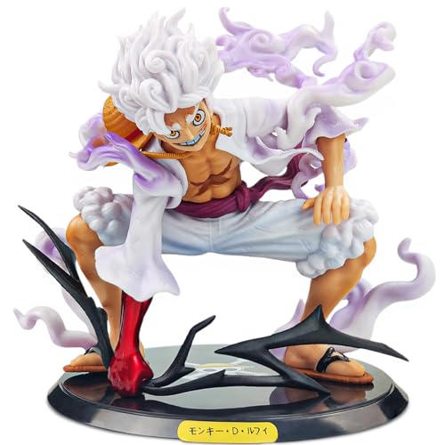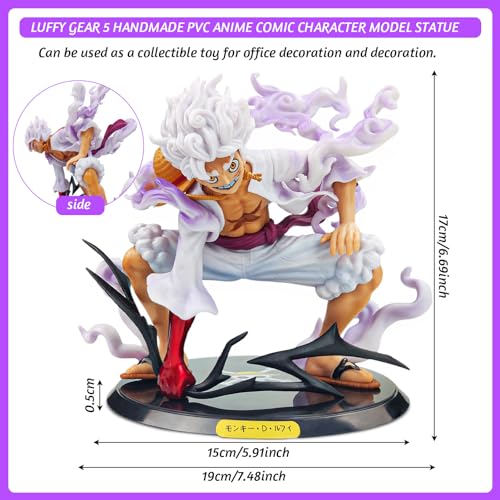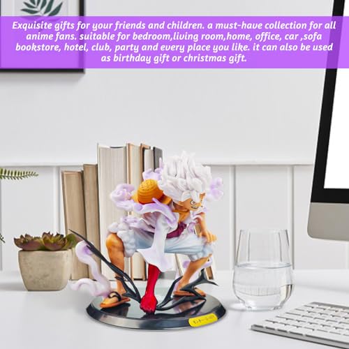 - One piece figure luffy: the package contains 1 x Luffy Gear 5 cartoon character statue ornament and 1 x base. One piece figure is 23 x 19 x 8 cm in size and the base is 18 cm tall. Perfect size to stand on your desk.