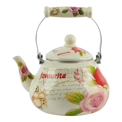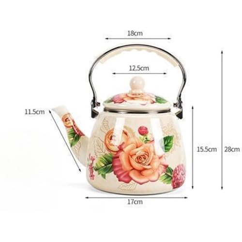 Generic - غلاية شاي مطلية بالمينا بمقبض من السيراميك، براد شاي جيلي بنقشة زهور، إبريق شاي من الصلب للموقد وبوتاجاز الحث الحراري، سعة 1.5 لتر