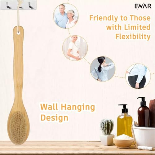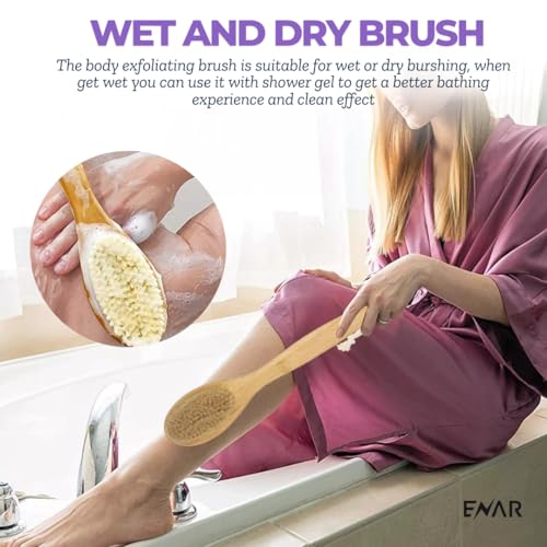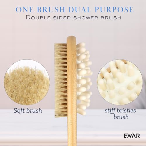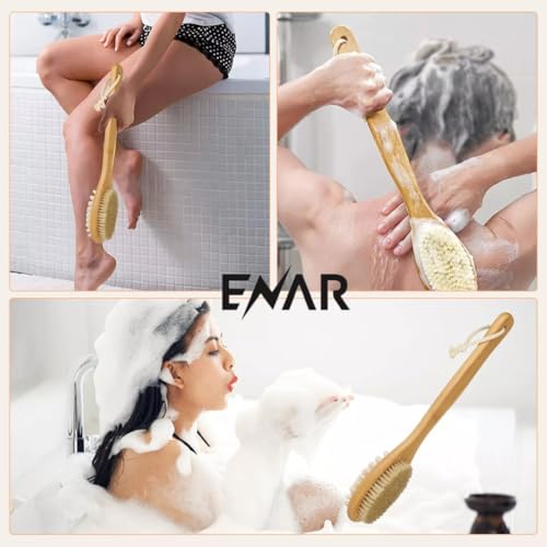 ENAR - ENAR Wooden bath Shower Brush, 2-in-1 Exfoliating Natural Bristles Scrubber with Long Handle, Back & Body Massage Brush for Skin Care.
