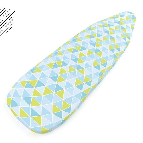 Encasa XO - Encasa Homes Ironing Board Cover with 4mm Extra Thick Felt Pad for Steam Press - Triangles Aqua - (Fits Standard Medium Boards of 112 x 34 cm) Elastic Fitting, Heat Reflective, Protective