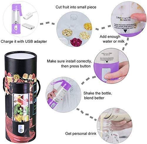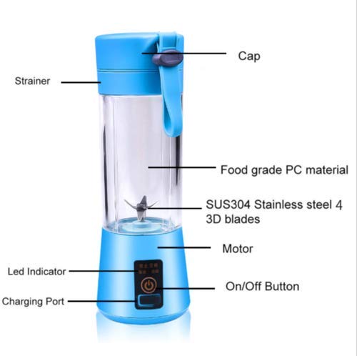 Encora - خلاط عصارة كهربائي محمول بمنفذ USB، خلاط ومطحنة (4 شفرات، ازرق، عبوة من قطعة واحدة)، 500.0 واط