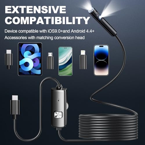 - 1920p HD pixels: Inspection camera with 1920P HD pixels and 8+1 LED cameras can ensure high -definition shooting in a dark environment. During the use of endoscope inspection camera, you can take pictures/videos for storage. Design a very convenient button on the cable (adjustable LED light brightness)