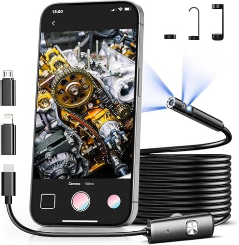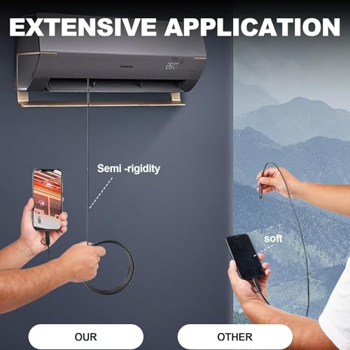 - Flexibility and waterproofing: The length of the semi -firm cable of the borescope is 16.4 FT (5 m), which can be bent freely and maintains its shape, with flexibility and rigidity. And the endoscope camera with light adopts waterproof IP67 technology, which can penetrate into pipes with water, which is very strong