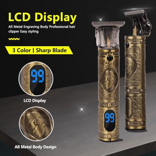 Endzone - Endzone Professional Rechargeable Digital Display Cordless Beard Hair Trimmer Kit with Guide Combs Brush USB Cord for Men, Family or Pets Rechargeable Li-ion Battery 120 minutes Runtime - Gold