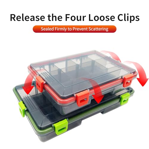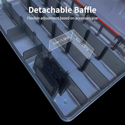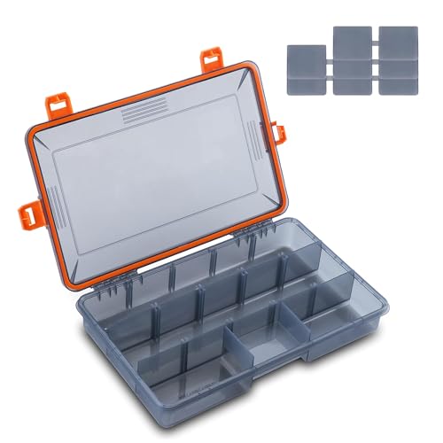 ENERFLAT - صناديق أدوات صيد السمك من انرفلات، صندوق منظم شفاف قابل للتعديل لحمل أدوات الصيد وطعم الصيد (قطعة واحدة، رمادي، شفاف
