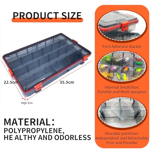 - متعددة الاستخدامات: يسمح لك التصميم الشفاف بتحديد الأدوات بسهولة دون الحاجة إلى فتح المقصورات، مما يوفر الوقت والطاقة. يمكن استخدام الصندوق أيضًا لصيد الأسماك في المياه المالحة أو في بيئات المياه العذبة.