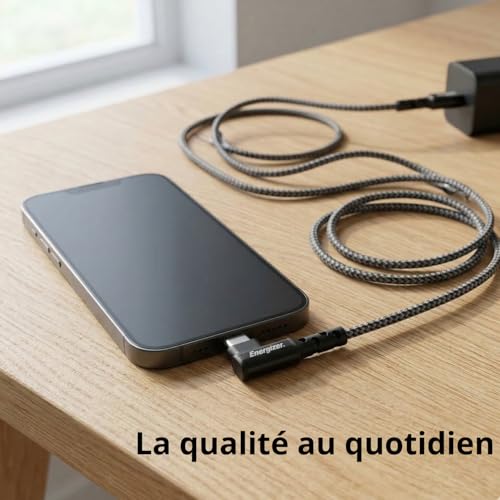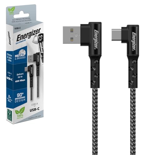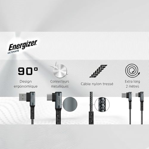 Energizer - كابل يو اس بي- سي 90 من انرجايزر 2 متر - اسود، لهاتف ذكي