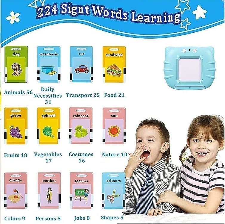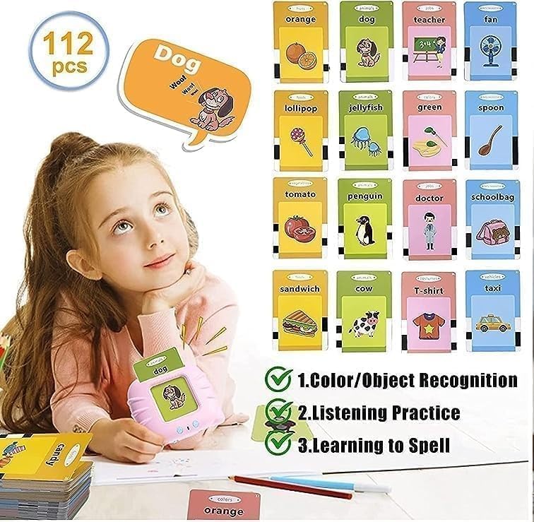 - مجموعة تعليمية كاملة: تغطي مجموعة فلاش التعليمية كل شيء من خلال 112 بطاقة تحتوي على 224 كلمة إنجليزية صوتية ومرئية حول (الطعام والحيوانات وأدوات السفر والشخصيات وغيرها الكثير)، مما يجعلها مجموعة بطاقات تعليمية كاملة لطفلك.