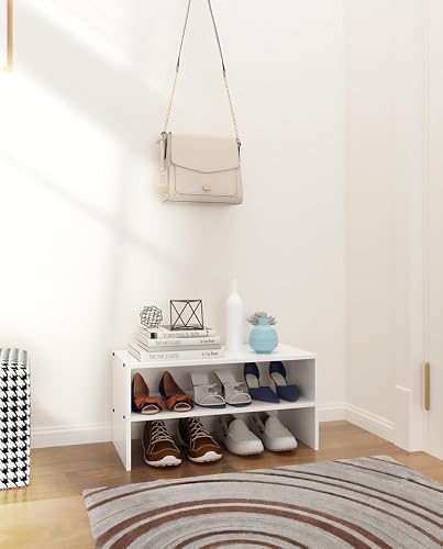 Enigmatic Woodworks - انيجماتيك وود ووركس منظم احذية من طبقتين حامل تخزين خشبي قائم بذاته برفين لـ 6-9 ازواج خشب مهندس مغلف مسبقا للمنزل والصالة والمدخل والمكتب - ابيض 2T