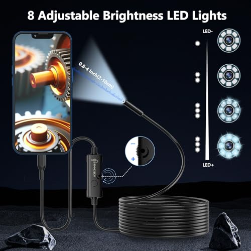 Ennovor - Endoscope Inspection Camera, 1920P Flexible Rigid Endoscope, 8 LED Borescope, USB No WiFi Inspection Camera, IP67 Waterproof Tube Sink Drain Cameras, for Android iOS iPhone iPad Samsung,16.5FT