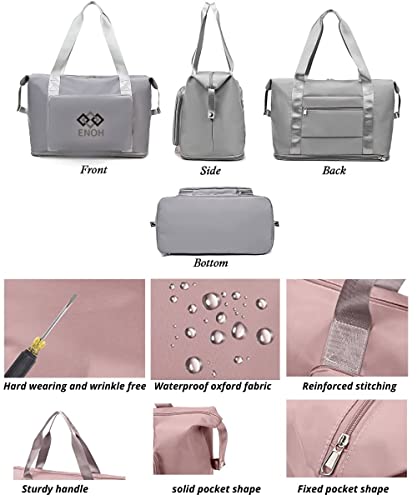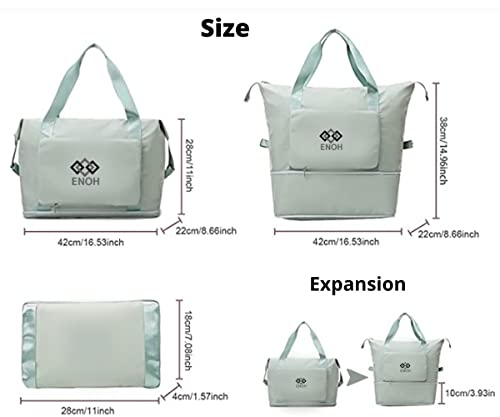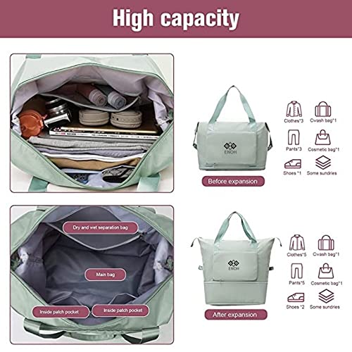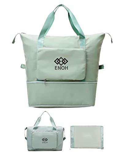 ENOH - ENOH Foldable Travel Bag with Large Capacity Weekend Overnight Bag Sports Bag Women's Waterproof Travel Bag Shoulder Handbag for Sports, Gym, Travel, Beach, Shopping, Green, L