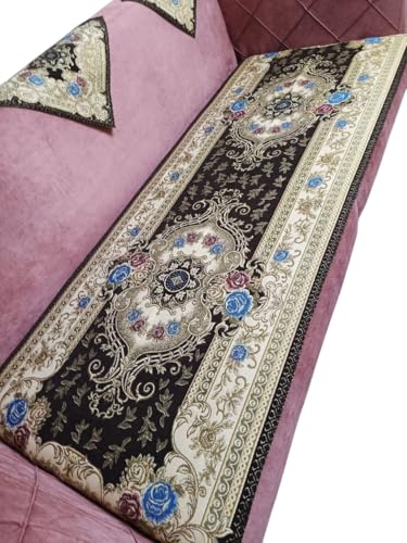 - 1) Luxury design: made of luxurious gulplan with classic gold and blue and brown flowers on white background