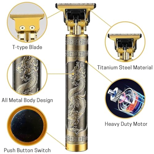 - 💪 Premium All-Metal Body with Dragon Design – Crafted with a strong metal housing featuring a stylish engraved Dragon design, this trimmer is not only durable but also a premium grooming tool. Anti-slip body provides a firm grip while giving your grooming routine a luxurious and professional touch.