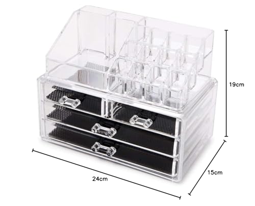 enyaa - enyaa Makeup Organiser Acrylic Jewellery Box Products Cosmetic Organiser Drawer Makeup Storage Case - Drawer Makeup Holder for Lipstick Skincare Products (Transparent, 4 Drawers)
