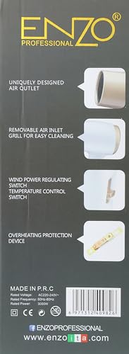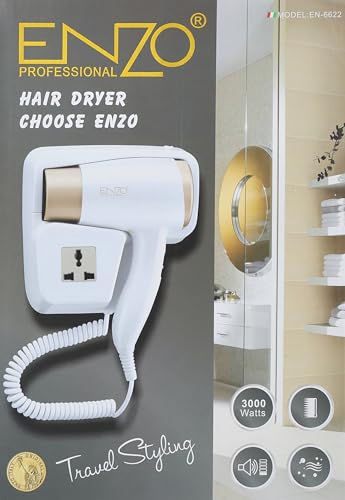 ENZO PROFESSIONAL - مجفف شعر يثبت على الحائط بقدرة 3000 وات من اينزو، للحمام والفندق، لون ابيض × ذهبي، موديل EN-6622