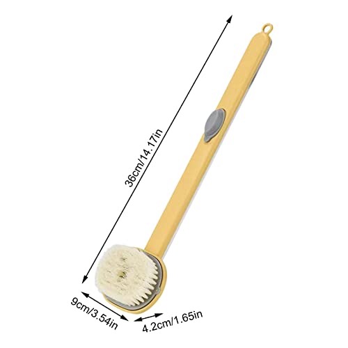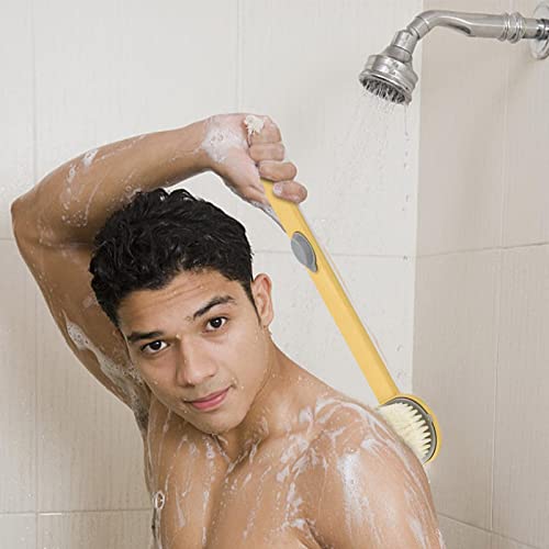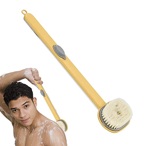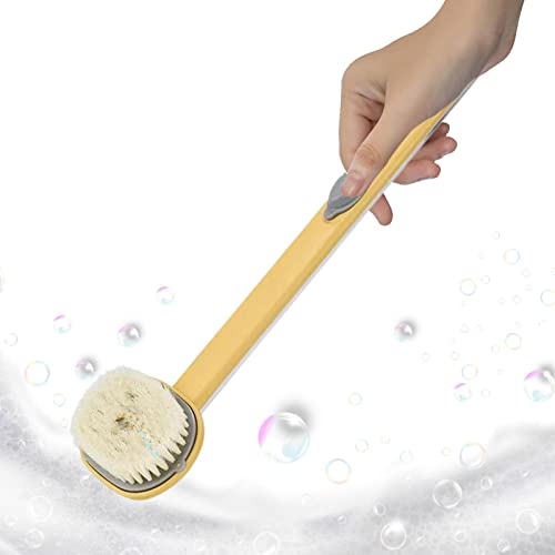 - Reliable Materials To offer a comfortable touch, the long handle body brush for shower adopts soft bristle brush with moderate hardness that will not hurt your skin while bathing and scrubing.