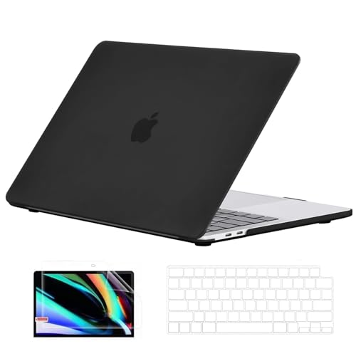 EooCoo - EooCoo Hard Case Compatible for MacBook Pro 13 inch Case 2024 2023 2022-2017,M2 A2338 A2251 M1 A2289 A2159 A1989 A1706, Plastic Hard Shell & Keyboard Cover & Screen Protector - Matte Black