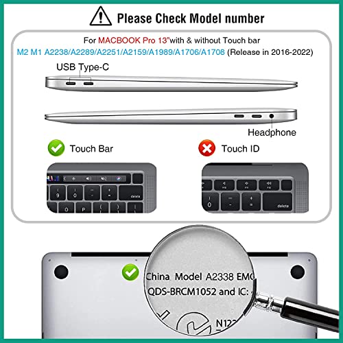 - ✔️ Only Compatible for NEW M2/M1 Macbook Pro 13 inch with Touch Bar(Model:A2338 A2251 A2289 A2159 A1989 A1706,Released in 2017-2024) Please check the Macbook model "AXXXX" on the back before purchasing.