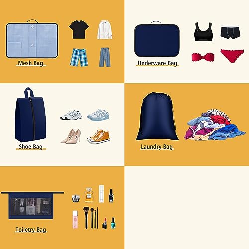 - 【User-friendly Design】 Mesh clothing bags and toiletry bags make it easy to find what you need. And the breathable mesh also keeps your clothes fresh. The underwear, sock & laundry bags are solid to protect your privacy.