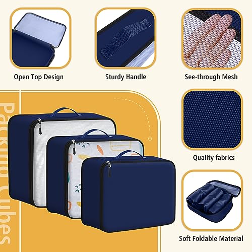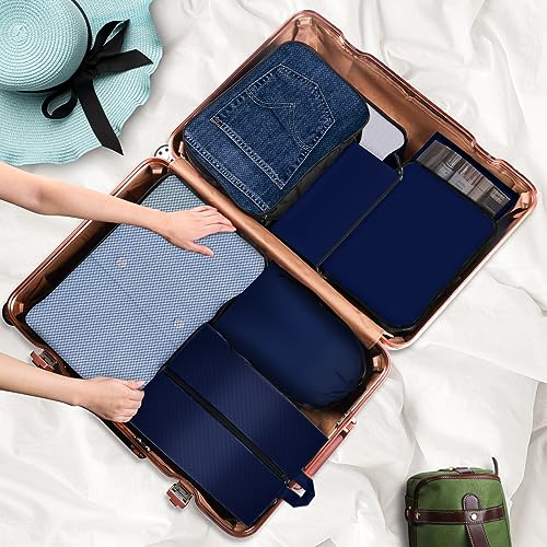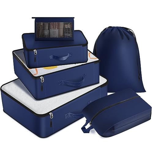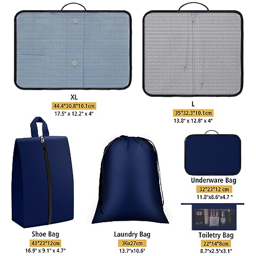 EpicTotes - 6 Set Packing Cubes for Suitcases, Lightweight Nylon Travel Bags with Shoe, Toiletry, Underwear & Laundry Bags, Blue