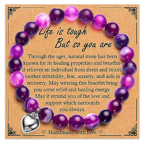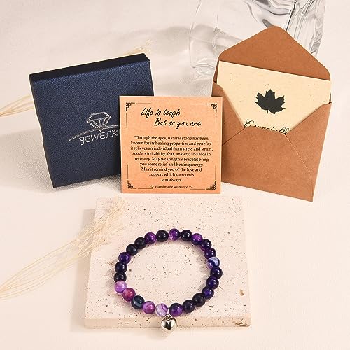 EPIRORA - EPIRORA Get Well Soon Gifts for Women, Natural Stone Amethyst Healing Stretch Bracelet, Inspirational Stress Relief Gifts Surgery Recovery Jewelry Gifts for Women Teen Girls, Metal, Amethyst