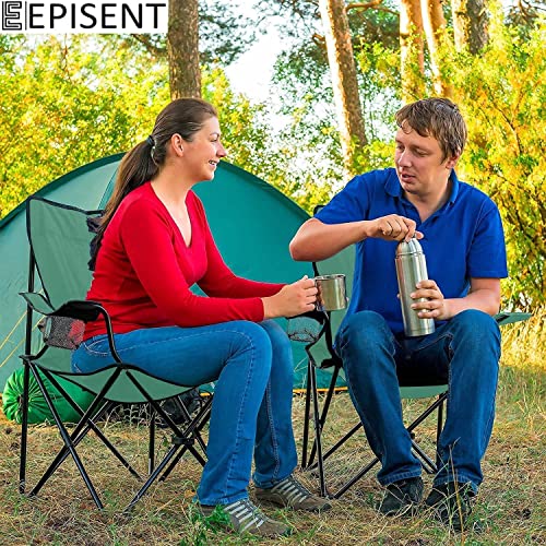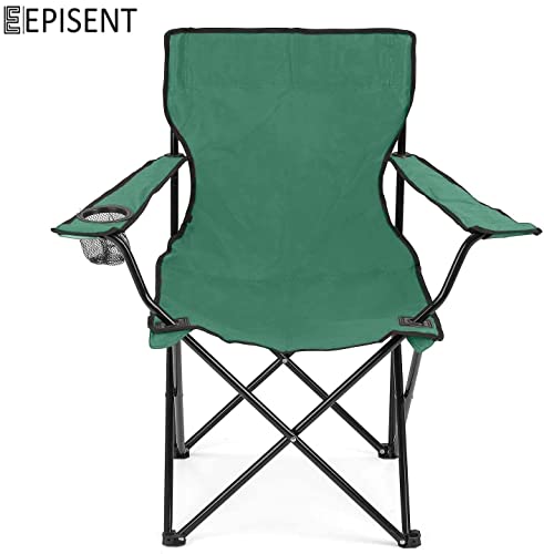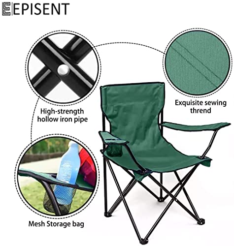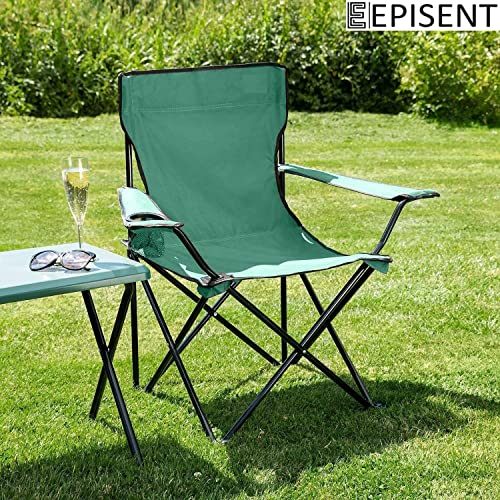 EPISENT - Camping Chair | Lightweight & Portable Fishing Chair with Carrying Bag | Armrests & Cup Holder | Perfect for Caravan Trips, BBQs, Garden, Beach, Picnic, and Traveling (Green)