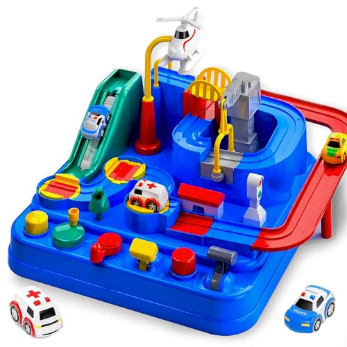EPPO - EPPO Toddlers 3-7 Years Unisex Blue Realistic Racing Car Adventure Toy Set with 3 Mini Cars: Police, Ambulance, Taxi, Interactive Challenges, No Batteries Required